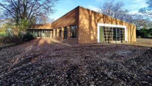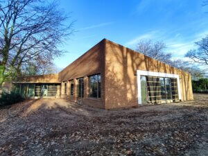 De meesterlijk metselaars zijn met de noorderzon vertrokken, kozijnen krijgen keurig hun plek en binnen bikkelen de bouwers door aan de afwerking. De gemetselde stenen muren gaan mooi op in de omgeving en passen goed bij het boerderijachtige karakter. Ook mooi om te zien zijn de iets teruggetrokken kozijnen in een zachte, warme kleur.